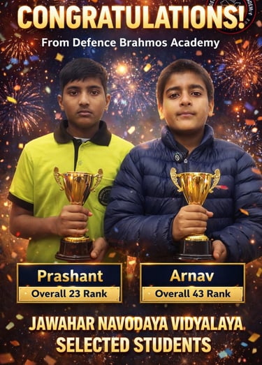Defence Brahmos Academy is a coaching institute dedicated to preparing students for prestigious entrance examinations of defence and residential schools in India. Our academy guides young aspirants with the right academic preparation, discipline and confidence required to succeed.